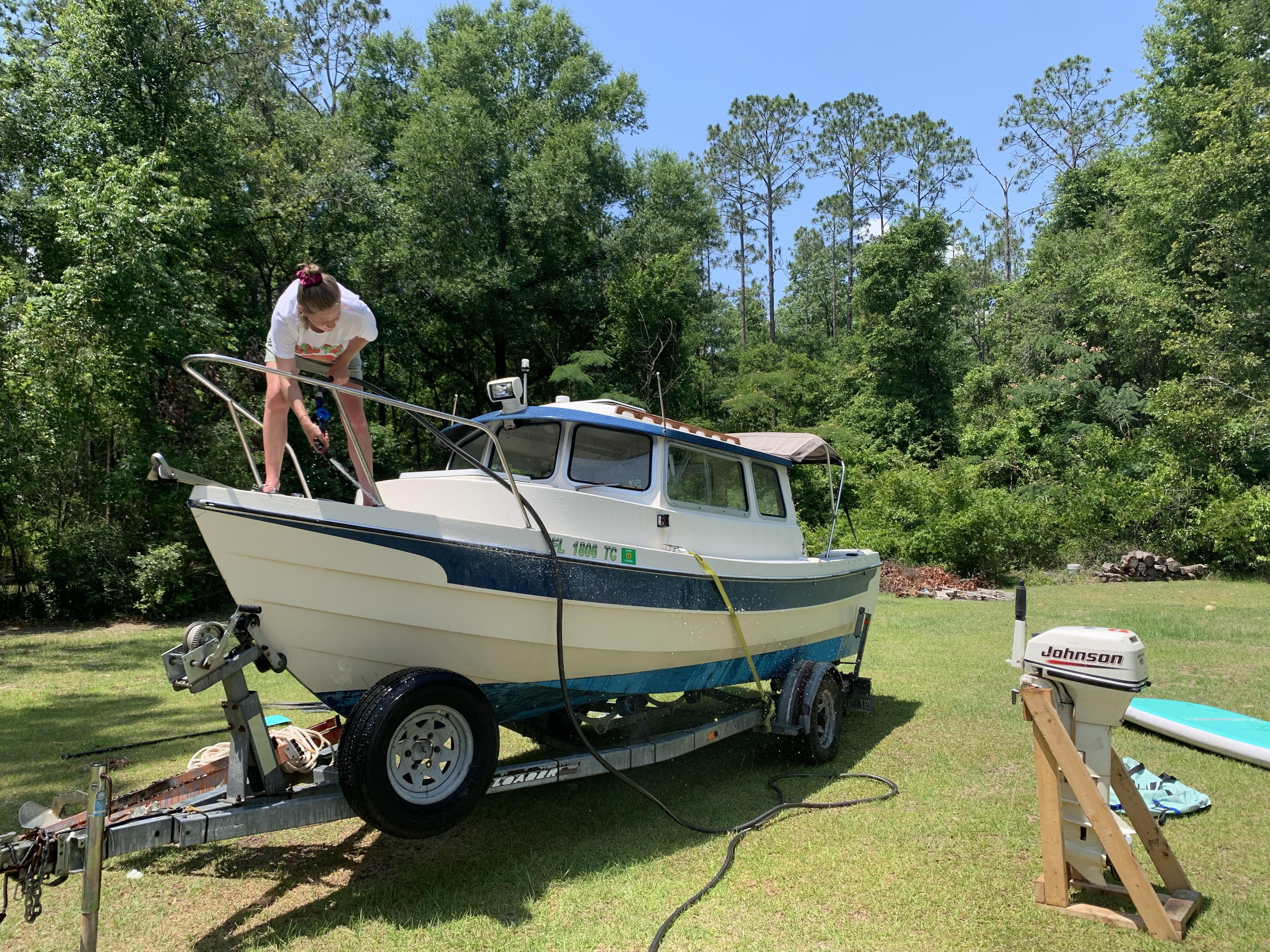 -I buffed/waxed the boat and installed new teak handrails (can’t look rough in a pretty place)