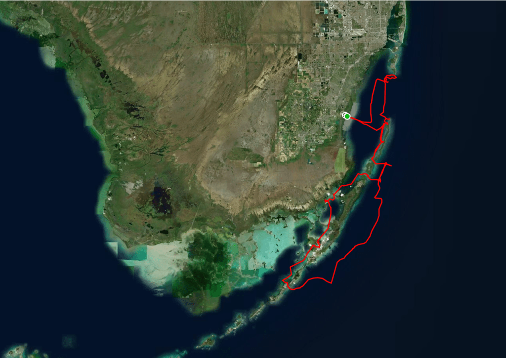 I picked up Alicia in Orlando and we made our way south through Miami, arriving at Black Point Marina in Homestead around 6pm. This is a huge launch with 6 active ramps and loads of parking. By the time we were ready to launch it was around 8pm and there was still a steady flow of boaters coming in and out, but with the 6 ramps we had plenty of space. Launching the boat went smoothly until I went to drive the van back up the ramp and was spinning both rear tires on my 2WD Sprinter van. After some panic I decided to air down the tires and luckily that worked like a charm and we were safely out and parked. I’ve found even on steep ramps my rear wheels need to be in 4-5″ of water to get the boat off of the trailer, luckily when I’m retrieving it I don’t need to be as deep. We set off from the docks in the dark, relying on my Navionics charts and spotlight for channel markers. We planned a route to a nice cove off of Sands Key and found a good anchorage for the evening. There was a bit of chop and a stiff breeze but we made it without any issues. Off to bed!