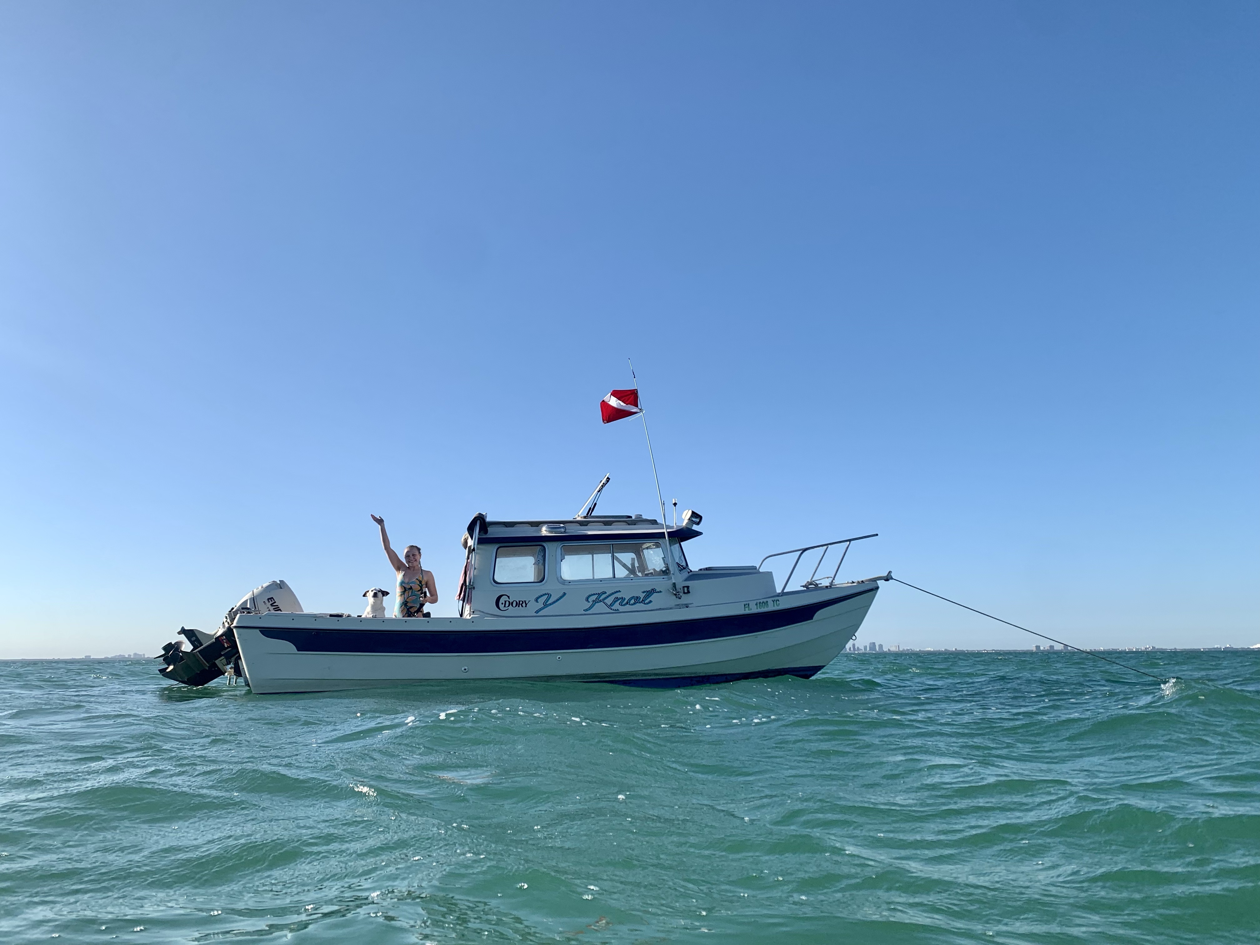 We had an early start and were off around 7am, first stop a shore visit to take Sheck out for a pee break. Finding a place to come ashore (for free) was a challenge, but we noticed some dinghys and kayaks parked in front of a municipal building in Key Largo and went there. There was a little walkway through the mangroves and it was accessible by boat, if you could draft less than a foot… so we fit perfectly! Dog walk done we set off into the ocean headed towards Molasses Reef. The waves were 2-3′ and spaced just a few seconds apart, so it was a rough ride out. As we made it further off shore there was another layer of waves 5-6′ tall and spaced widely, the two swells together made things pretty exciting. We made it to the reef (about 5 miles off shore) and found a nice mooring ball. The snorkeling was AMAZING! So much marine life. We spent almost two hours drifting on a line behind the boat, often swimming down to the reef to get a closer look. It was amazing, and the water was a nice 78 degrees. We also saw another C-Dory 22 out there! Back on the boat we were both feeling pretty seasick, so we headed inland towards Mosquito Sands for some respite. We each took a quick nap and felt rejuvenated, which was good because we had a lot left to see… Benwood Wreck: Broken up but full of life. We saw a saw our first sea turtle and a shark. Grecian Rocks: Shallow and amazing little snorkeling spot, so many fish and corals to look at. Christ Of The Deep: Cool I guess, not really my thing but it was neat seeing something I’d seen so many photos of. Carysfort Lighthouse: SO MANY SEA TURTLES. Great little stop, we went to take a photo of the boat in front of the lighthouse and got so much more than we’d asked for. Turtle Reef: Cool sand dollar. We finished off the day with a nice cruise in the sunset back to Elliot Key. Took Sheck for a walk and headed out to a sheltered anchorage for the night.