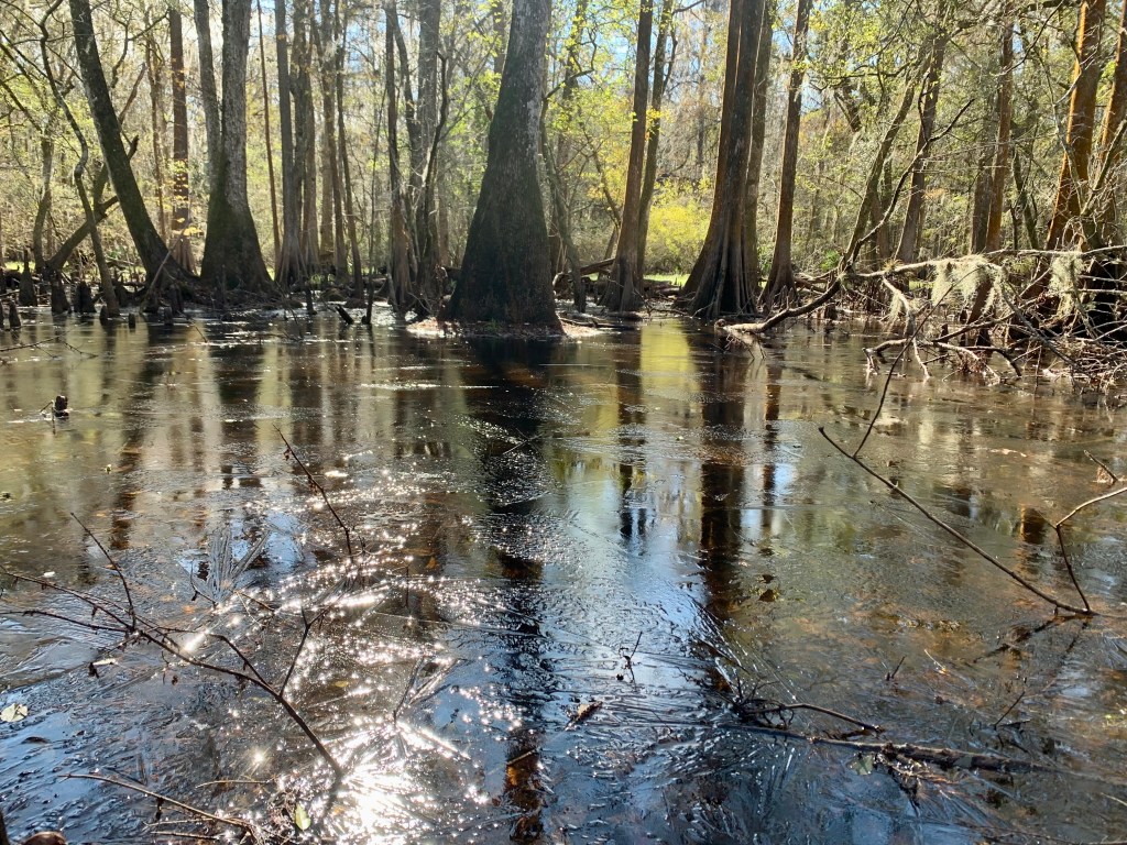 Woken by fishing boats cruising past me around 6am. We filled up the fuel tank in the morning and set off for Cedar Key. Pro tip: don’t come here during low tide unless you have a dinghy, paddleboard or other way of anchoring off shore and coming in. The public docking is not accessible at low tide, and the only place available was at the boat launch with a 5 minute limit. Oh well! We used the restroom in Cedar Key and then had lunch anchored off shore. The run here and back is about 25 miles and you need to go fairly far off shore to clear all of the shoals. It was a great test of the C-Dory on open water, it handled very well. On our way back we topped off on fuel and then came ashore and picked up some trash in a beautiful swamp along the shoreline. Camped anchored off shore of a wildlife management area and witnessed an absolutely stunning sunset. We covered almost 92 miles on this day.