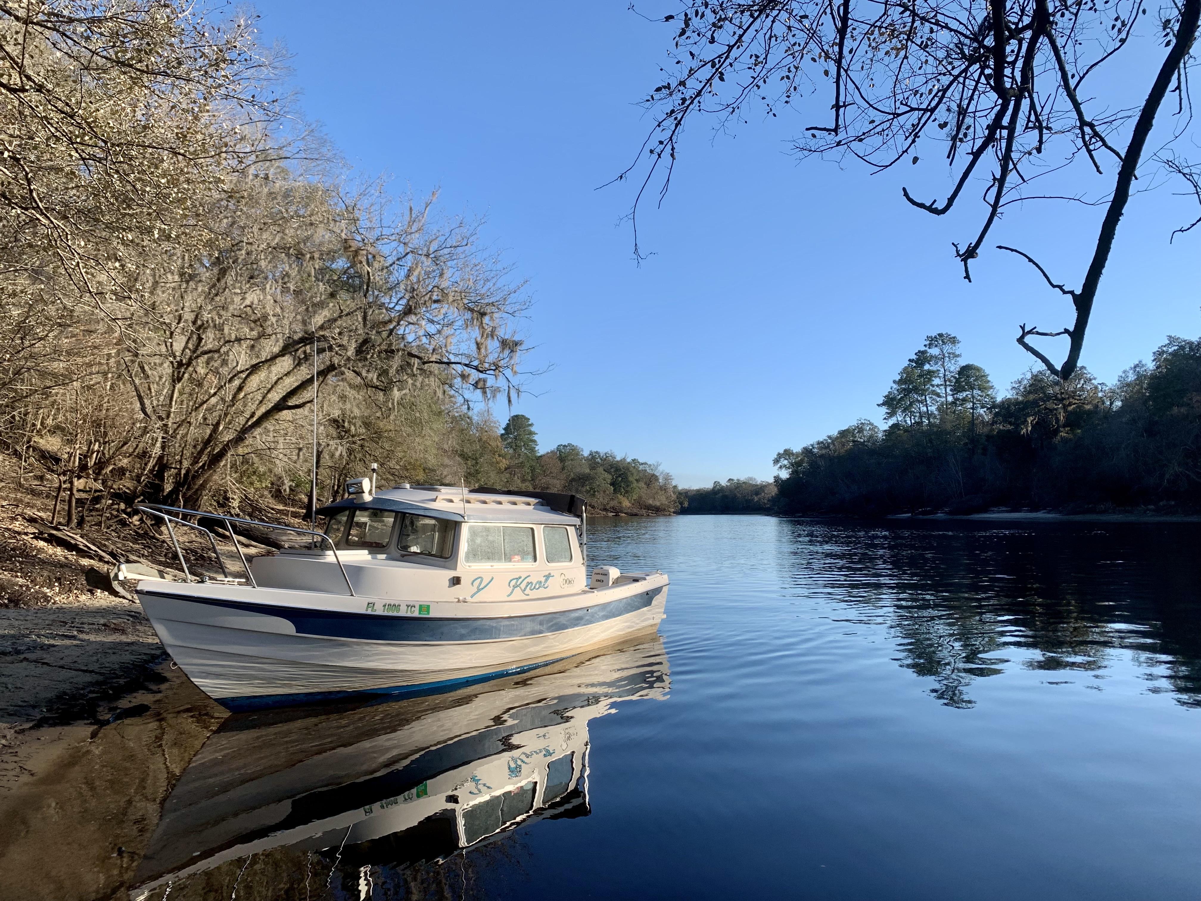 For Christmas 2022 Sheck and I set off on the Suwannee River for a nice father/son trip. Temperatures were unusually low, with night time lows in the 20’s and daytime highs in the 40-50’s. I had just finished some major repairs to the engine and wanted to put it through the paces to see how it performed. We spent 5 days on the river and covered 251 miles. Our basic route was from Branford down to the Gulf of Mexico (Suwannee Town) and then south to Cedar Key. On our way back we went up the Santa Fe River and turned around at the Ichetucknee River, returning to Branford.