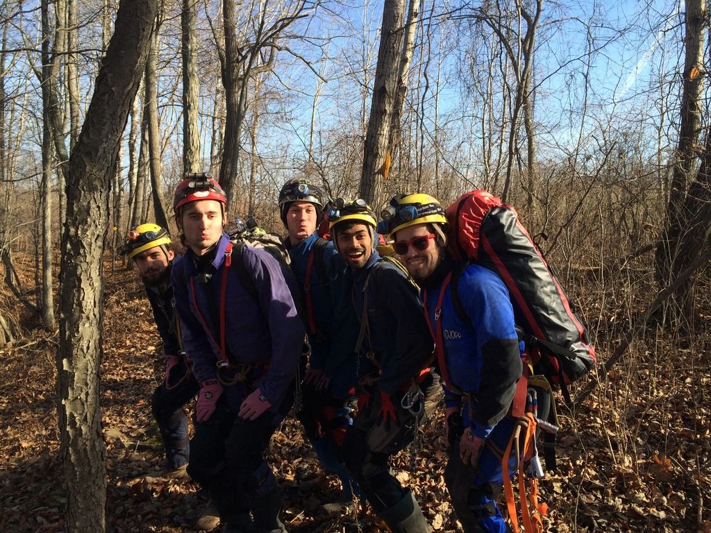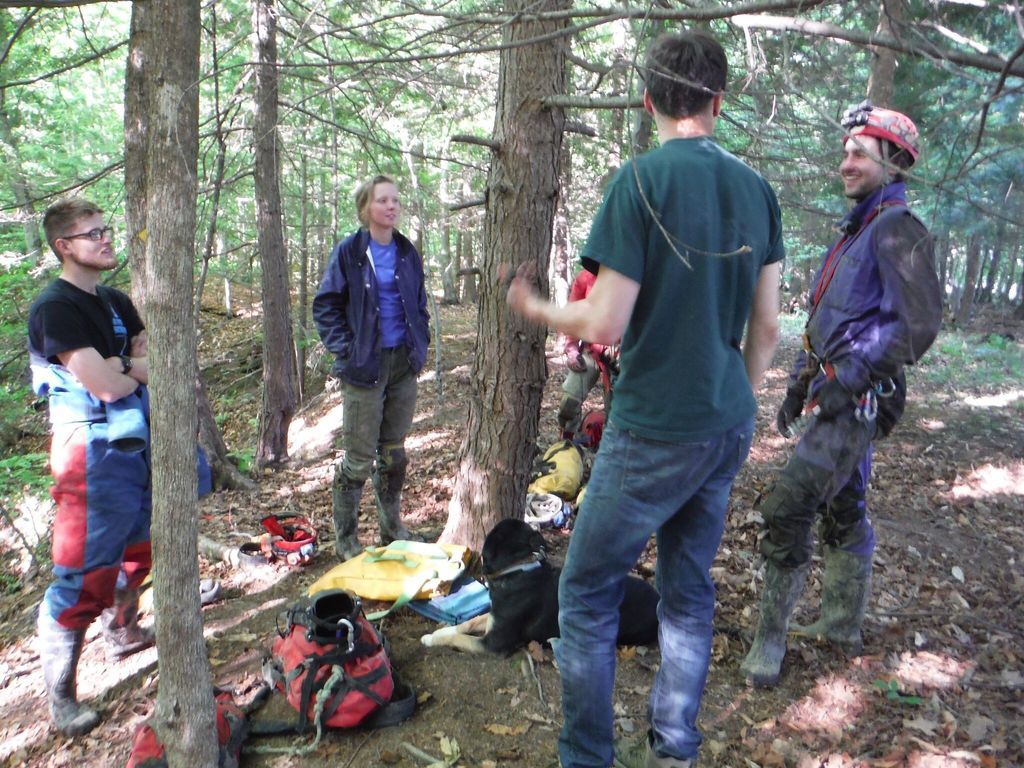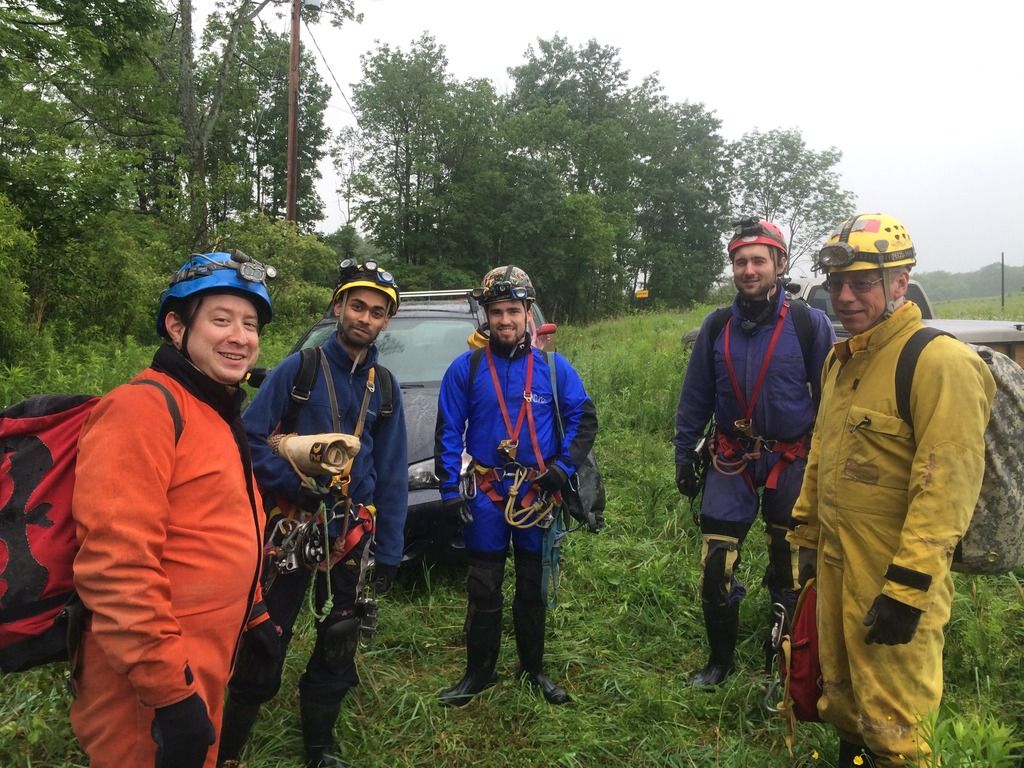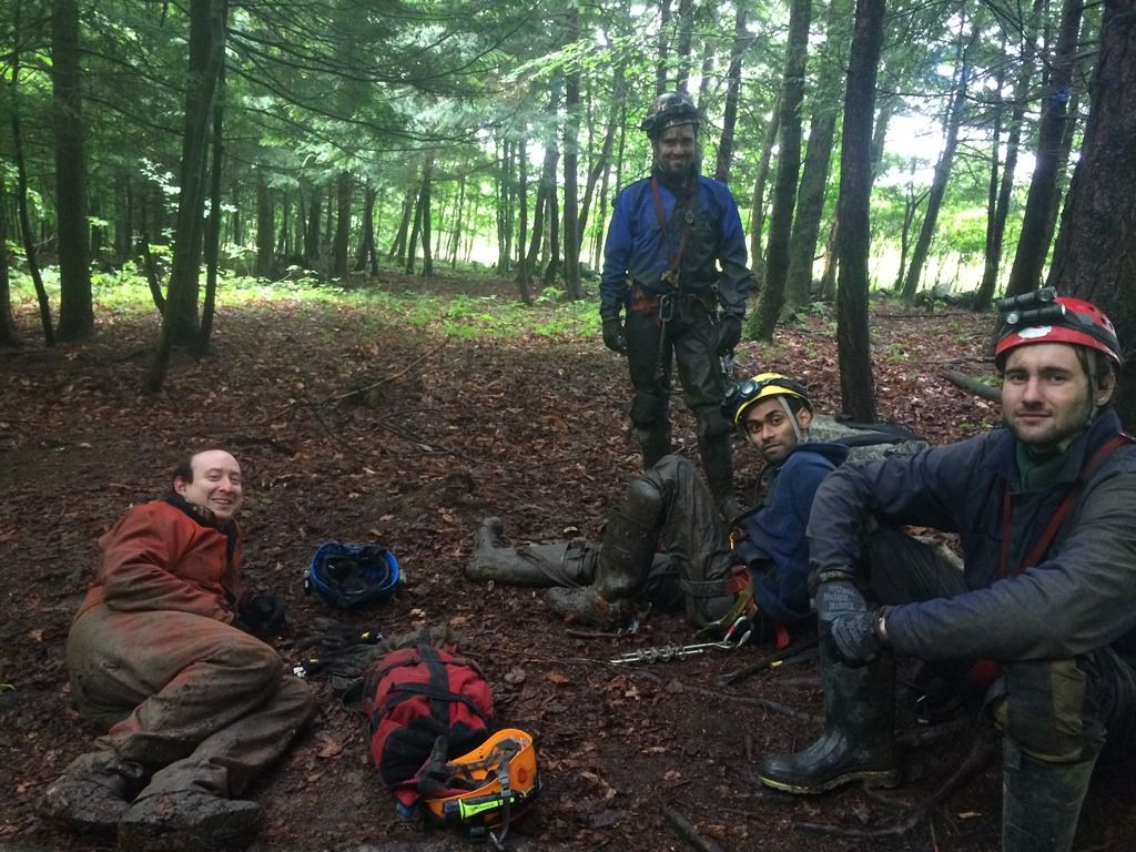Early on June 7th, I arrived at the Syracuse University Outing Club (SUOC) equipment room to meet up with several of the sherpas who would be assisting my gear and myself to the sump. Present for the trip was Nathan Roser, Joey O’Reilly and Kalia Zell. This was to be Kalia’s first caving trip, having very recently been trained in vertical caving techniques. We arrived a bit late to the cave, meeting up with caver Mitch Berger. We geared up in the parking lot, and began the long hike to the cave entrance.