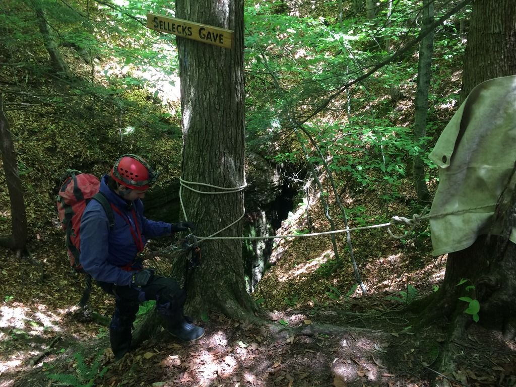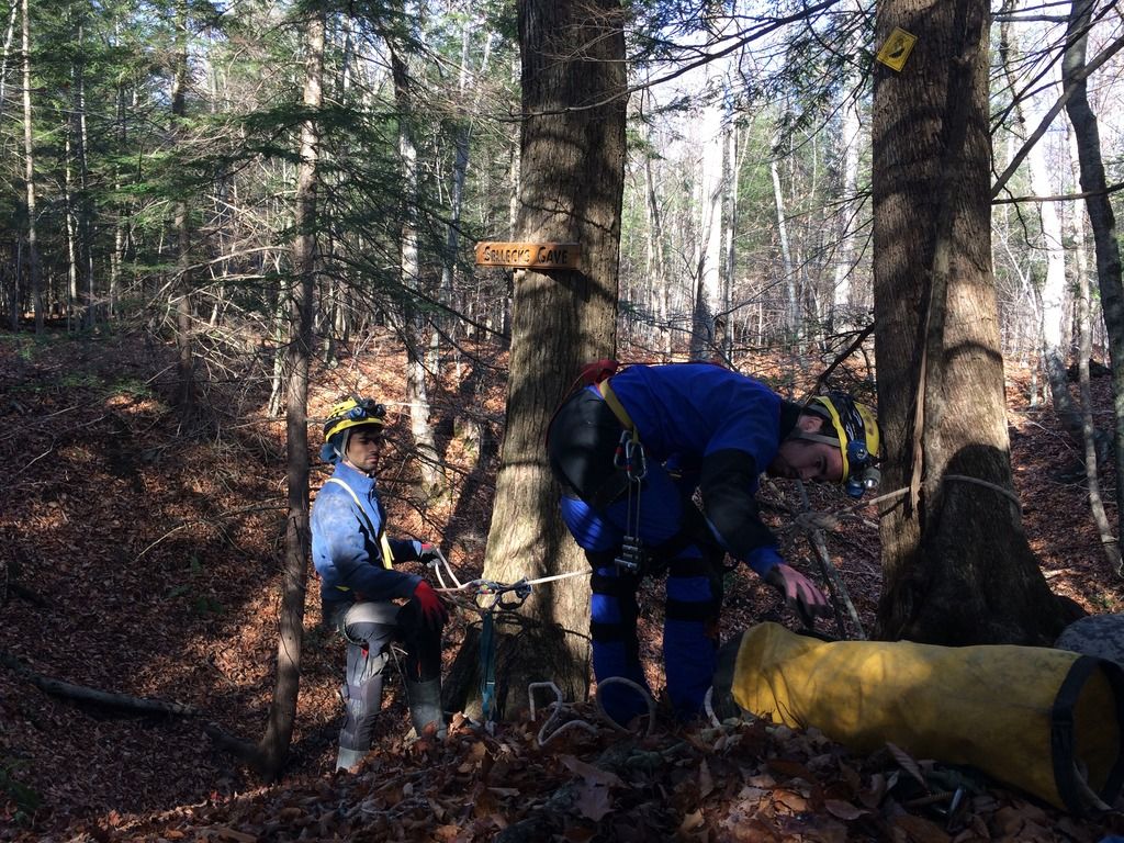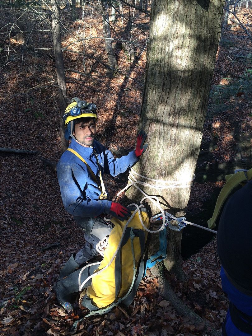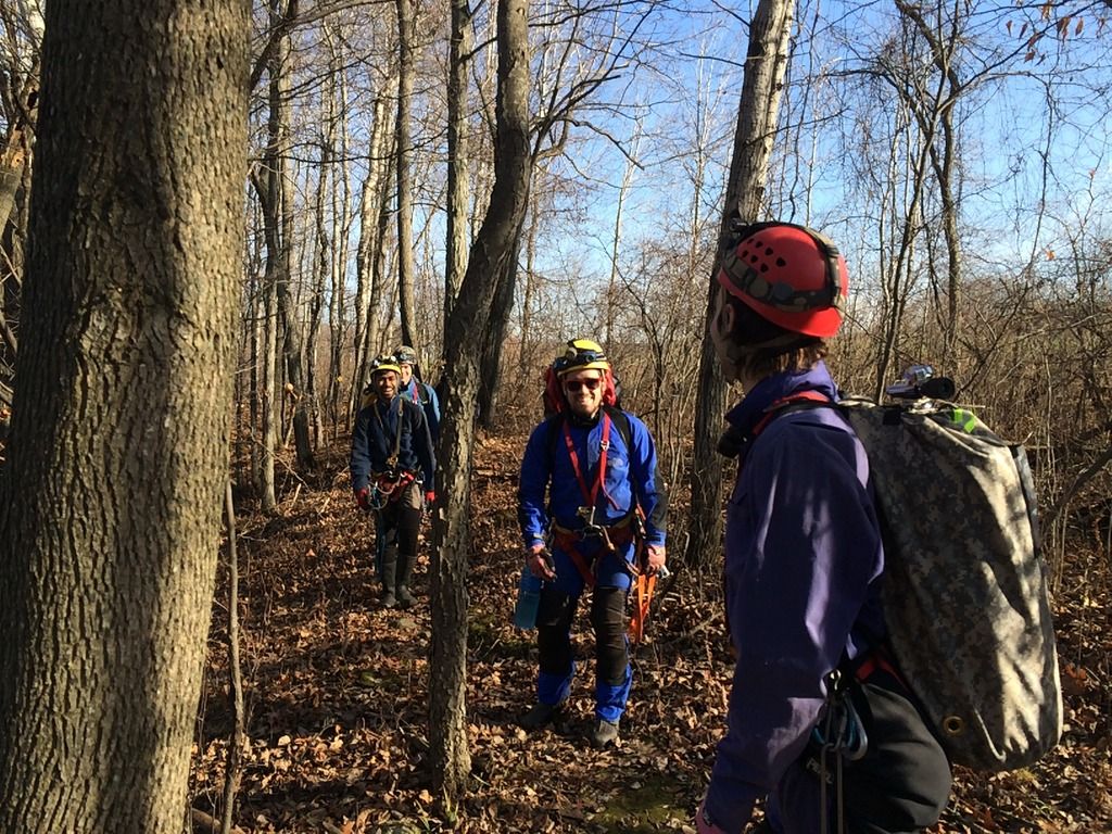 Early on June 7th, I arrived at the Syracuse University Outing Club (SUOC) equipment room to meet up with several of the sherpas who would be assisting my gear and myself to the sump. Present for the trip was Nathan Roser, Joey O’Reilly and Kalia Zell. This was to be Kalia’s first caving trip, having very recently been trained in vertical caving techniques. We arrived a bit late to the cave, meeting up with caver Mitch Berger. We geared up in the parking lot, and began the long hike to the cave entrance.