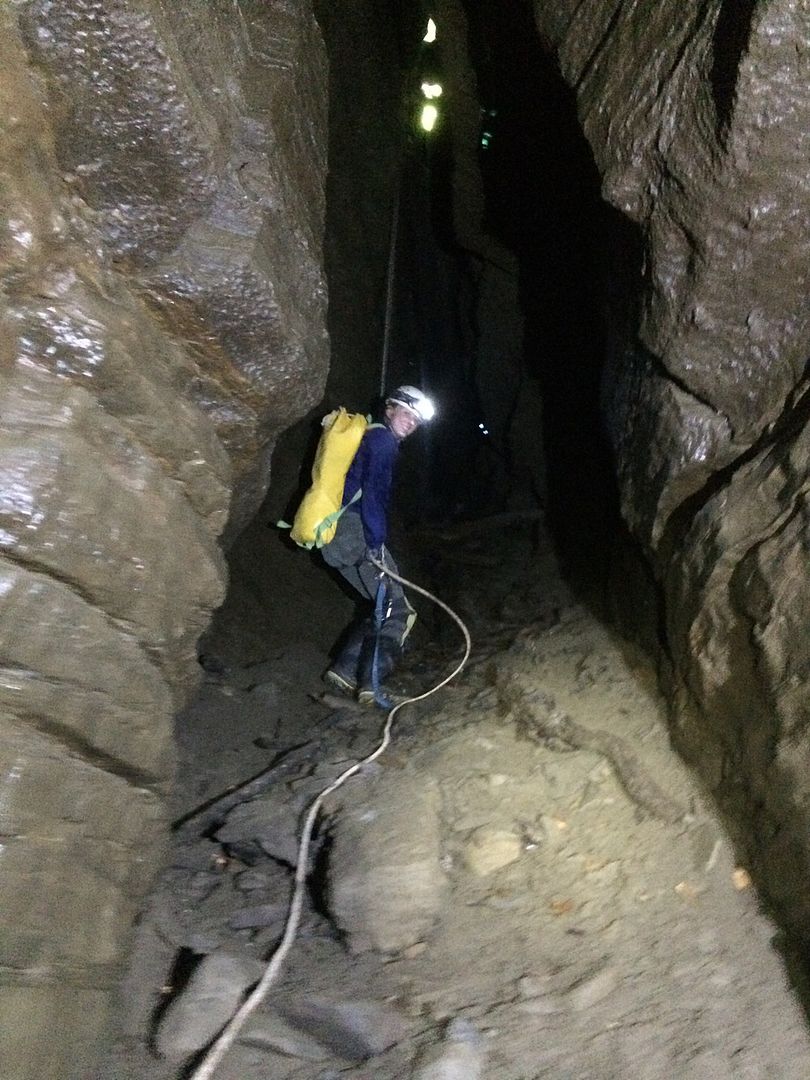 Arriving at Sellecks, we unloaded gear and made our way to the cave entrance. The walk takes about 15 minutes, and certainly isn’t very comfortable for those carrying my tanks. Upon arrival at the entrance, Nick and Asif rigged the drop and we began our descent.